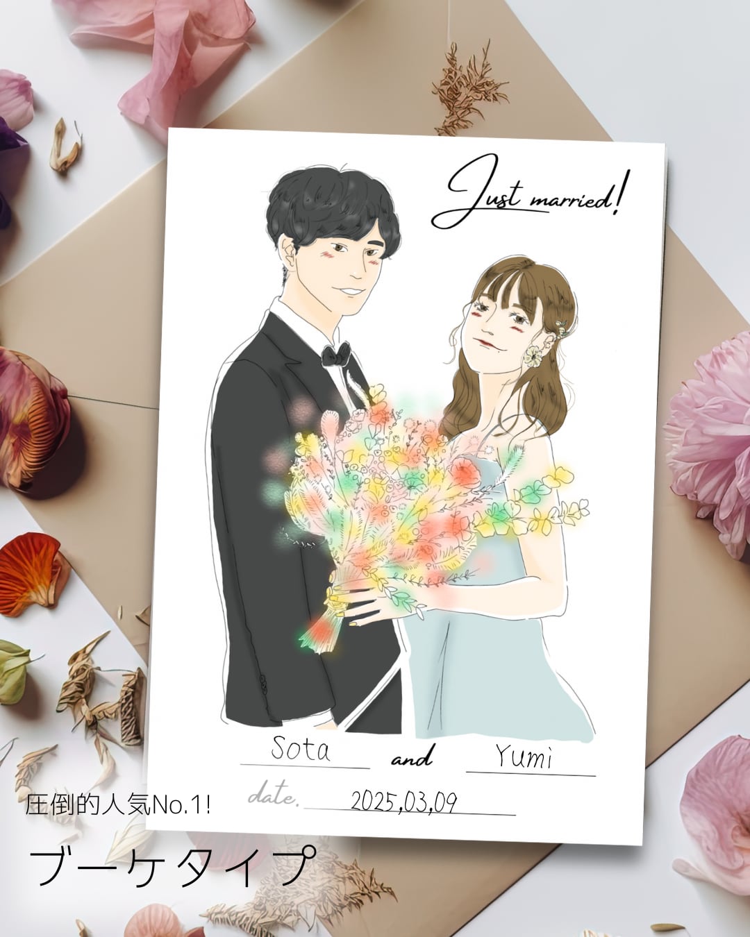 お写真や参考画像を元に、ご希望に沿った結婚証明書をお作り致します。